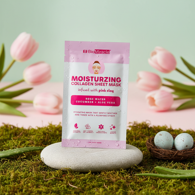 BioMiracle Moisturizing Collagen Sheet Mask Infused With Pink Clay