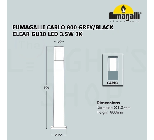 The Fumagalli Carlo Bollard Light is an elegant and durable outdoor lighting solution, designed to enhance the aesthetics and safety of your outdoor spaces. Made in Italy, this bollard light is crafted from high-quality, shockproof resin that is UV stabilized and resistant to rust and corrosion. It features a sleek design with a double methacrylate diffuser, providing efficient and uniform illumination. The light is equipped with a GU10 LED bulb with adjustable Kelvin settings, ensuring energy efficiency and long-lasting performance. The Carlo Bollard Light is TÜV-CB certified, guaranteeing high quality and durability.