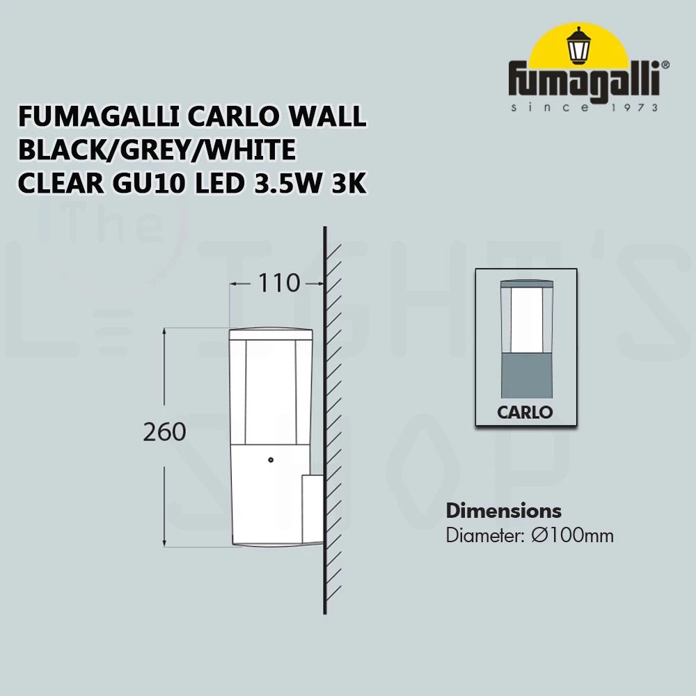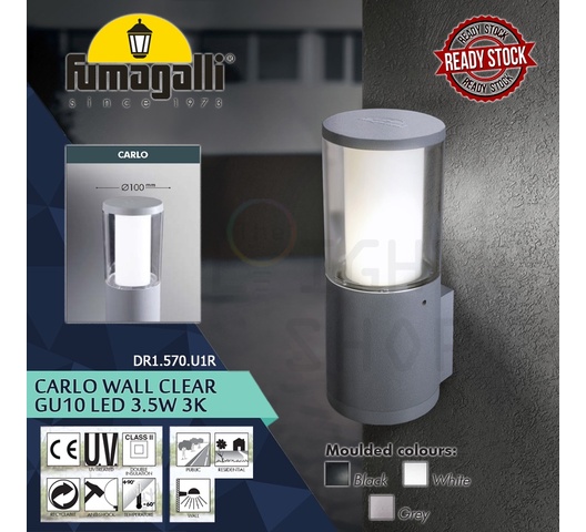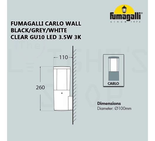 | What's Included? | 1 x Carlo wall light unit (main resin body, clear outer diffuser, opal inner diffuser, GU10 lampholder) |