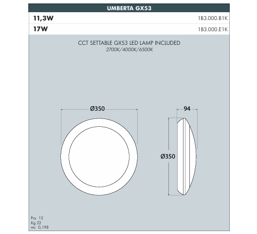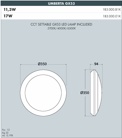 | Model | Umberta 1xGX53 |