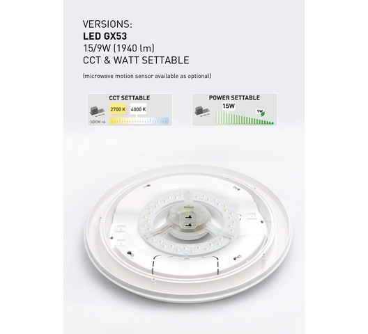 | Removeable Components | The GX53 LED lamp is removable and user-replaceable. |