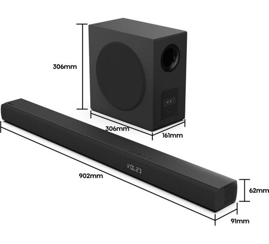 | What's included | 1 x Hisense Hisense HS3100 SOUNDBAR 3.1CH - 480W, 1 x User Manual, 1 x Warranty Card |