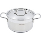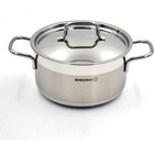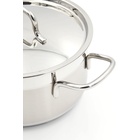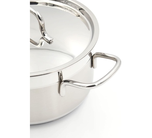 A large-capacity casserole from the Alfa series, suitable for cooking larger quantities of food. It features a super capsule base for uniform heat distribution and high polished exterior surfaces for a sleek appearance.