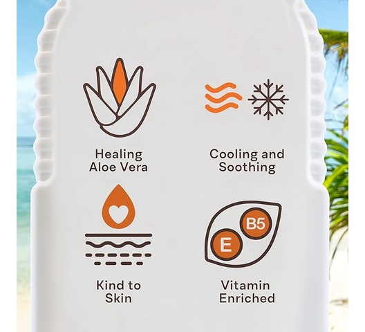 Soothing aloe and moisturisers – calms and hydrates sun-stressed skin.