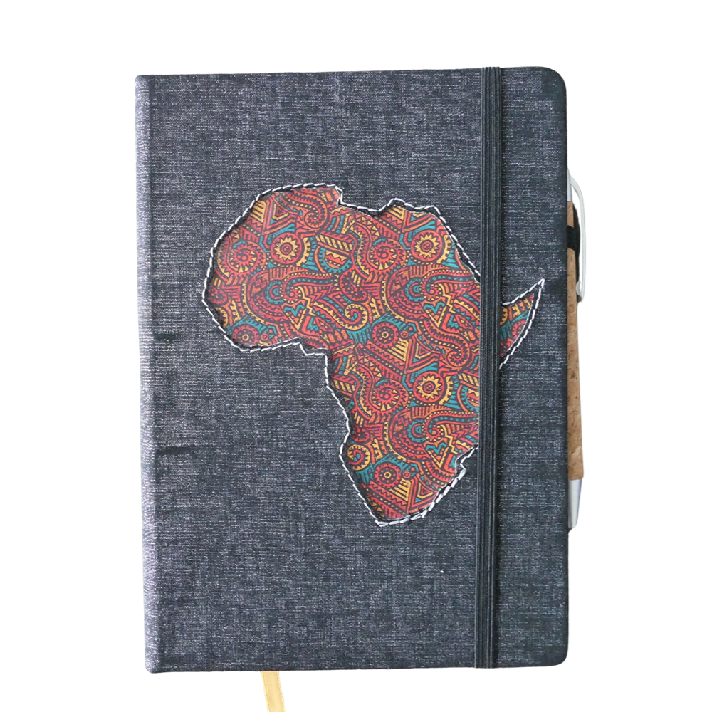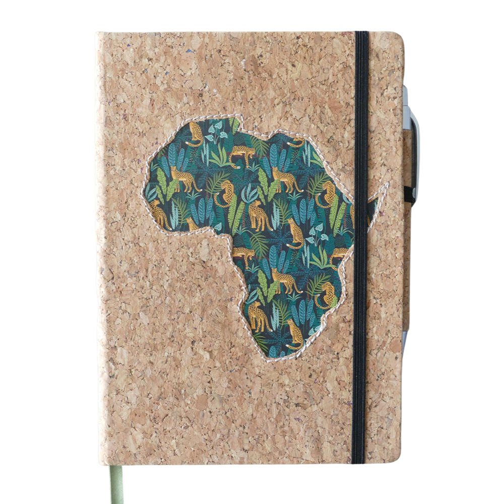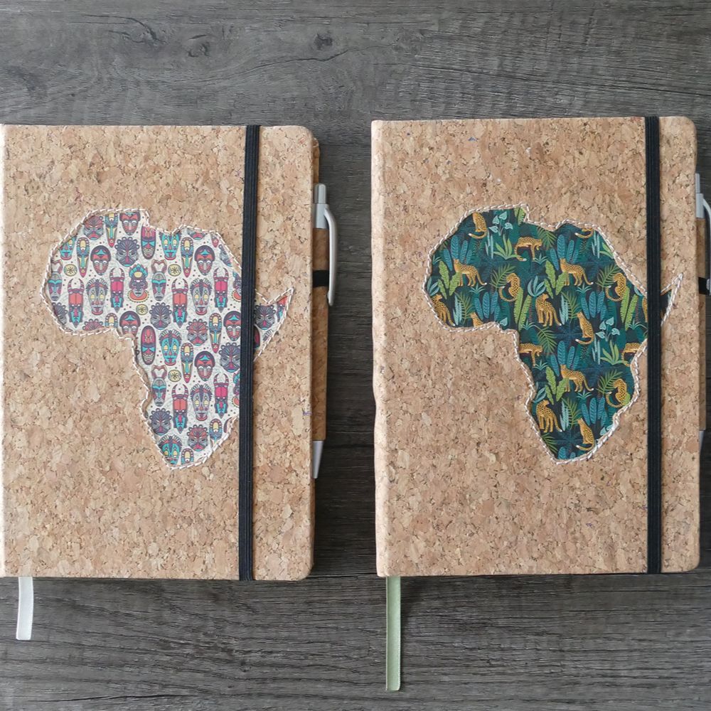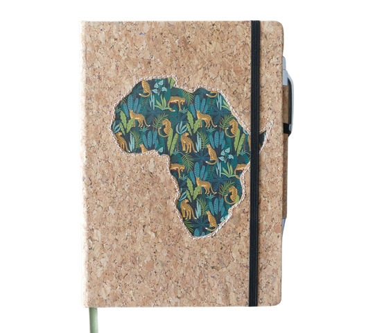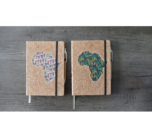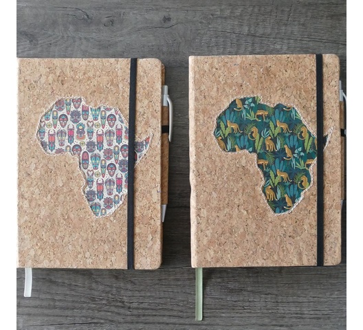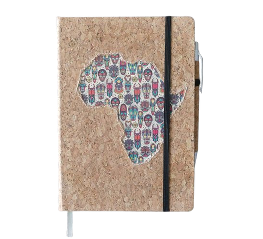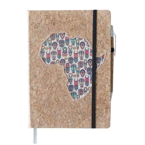 Premium leatherette A5 hard cover notebook with ruled pages on natural paper, with cork pen. The African Collection features vibrant designs inspired by African culture. The various editions are perfect for capturing your thoughts, ideas, and plans. The high-quality paper and durable cover ensure a great writing experience.