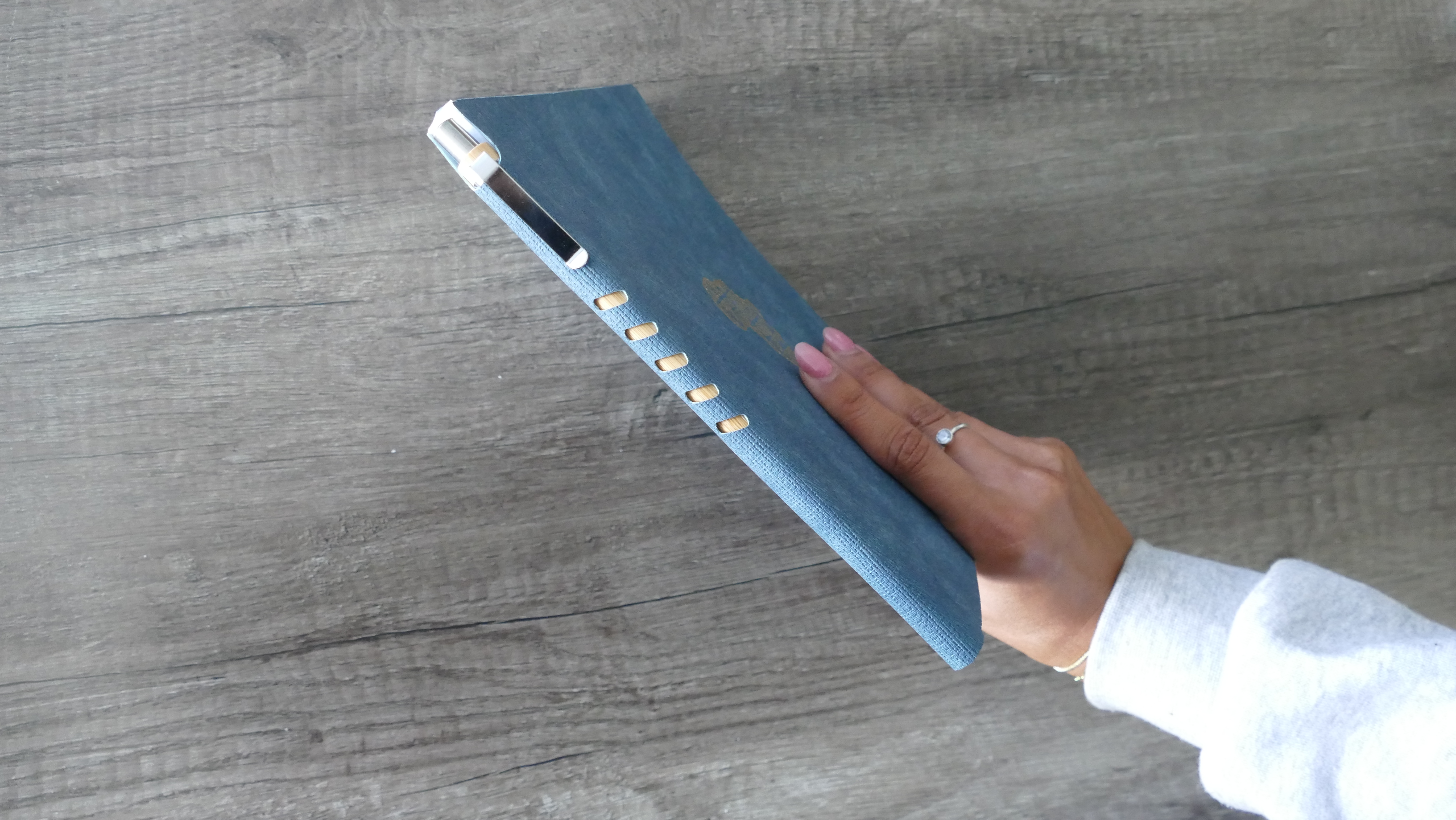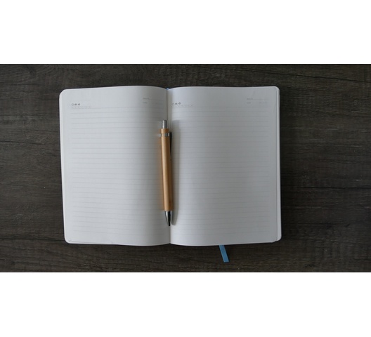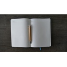 Premium leatherette A5 soft cover notebook with ruled pages on natural paper, with wooden pen. The Softcover Notebook offers a sophisticated and professional look, perfect for business meetings, classes, or personal journaling. The high-quality paper ensures a smooth writing experience, while the durable cover protects your notes.