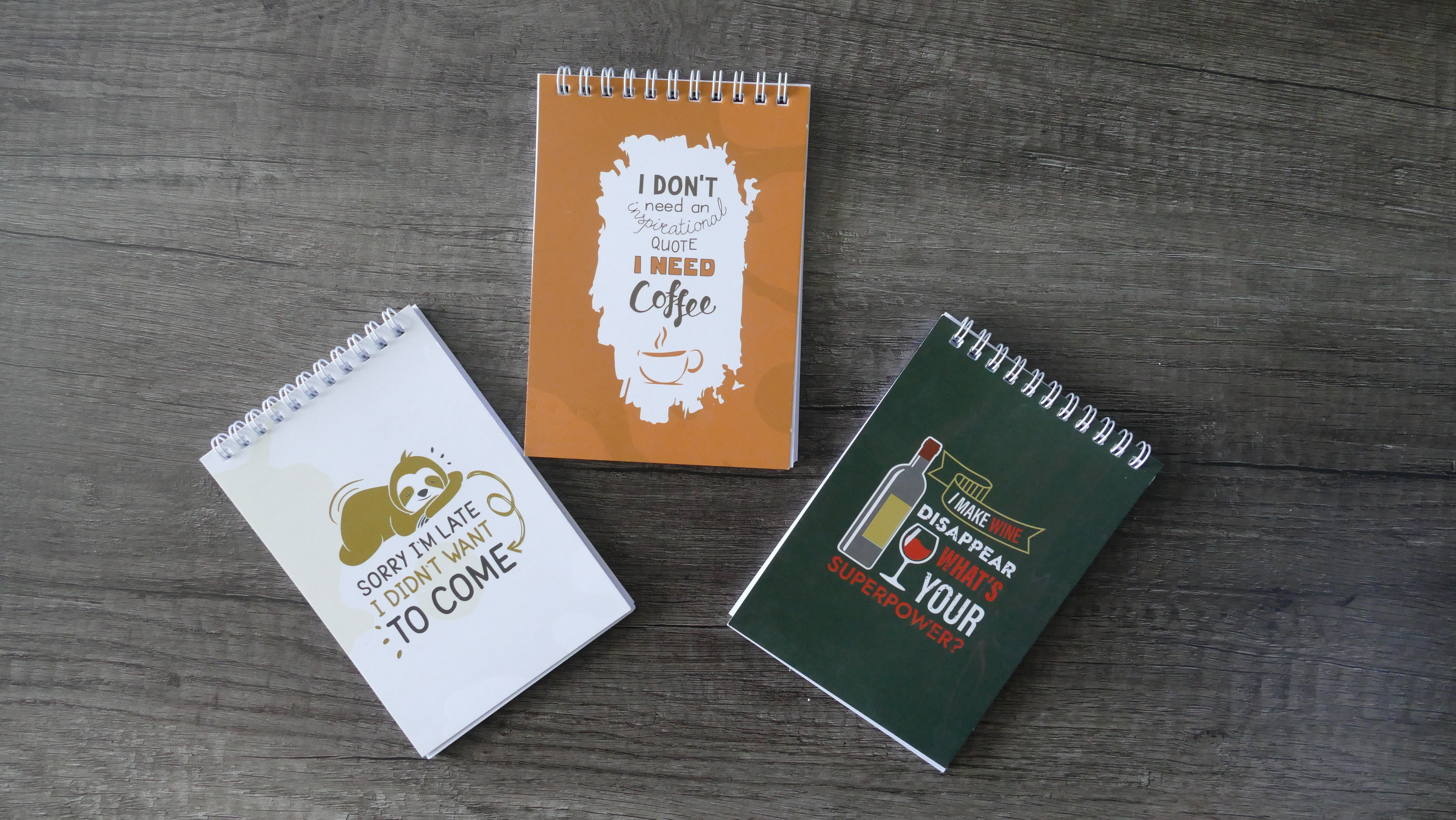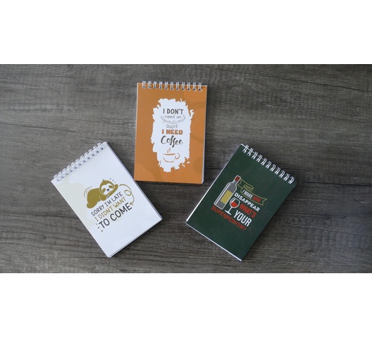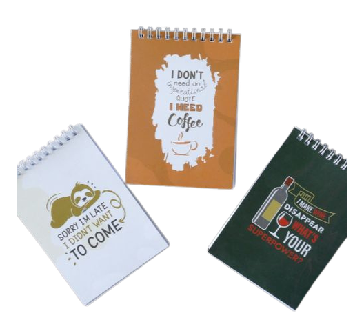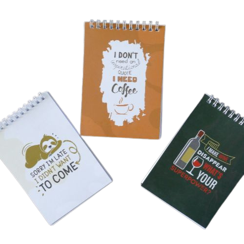 Wire bound notepad with ruled pages. The A6 Comic Collection Ruled Notepad in a bold beige, green or orange brings energy to your journaling and note-taking. Designed with quality ruled pages, it's perfect for keeping your thoughts neat and organized. The compact size makes it highly portable, easily fitting into any bag or backpack for creative moments on the go.
