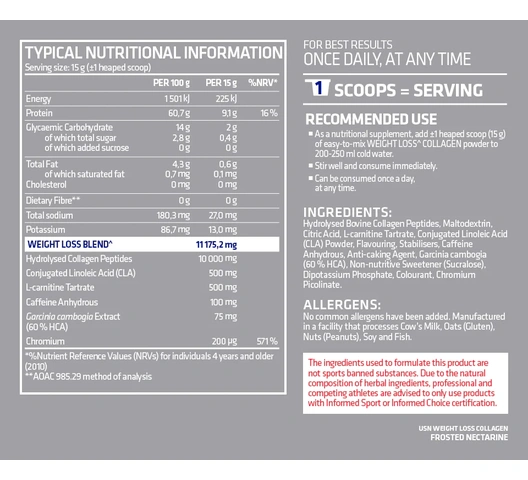 USN Weight Loss Collagen Powder - 300 g, Frosted Nectarine